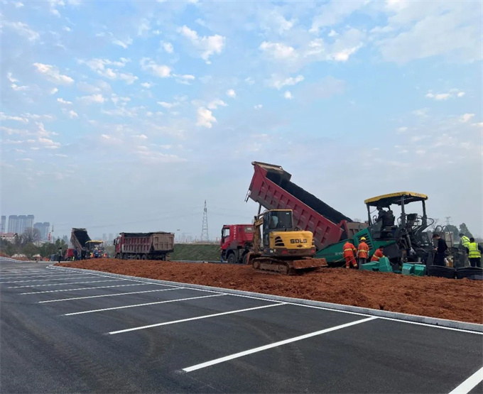 2023年1月10日-1月11日,在擁有近180 萬人口的江西省萍鄉(xiāng)市,江西安源路橋集團(tuán)有限公司使用福格勒國四設(shè)備超級1680-3 Li 攤鋪機(jī)和超級1900-3 L 攤鋪機(jī)為萍鄉(xiāng)北站露天停車場進(jìn)行瀝青道路鋪裝。由于客戶對施工質(zhì)量的要求非常高,且施工工期較趕,福格勒國四設(shè)備超級1680-3 Li 攤鋪機(jī)和超級1900-3 L 攤鋪機(jī)與AB600-3TV液壓伸縮式熨平板配套使用,并排攤鋪,雙機(jī)采用了福格勒超聲波找平技術(shù),非接觸式,無誤差,精度高,CAN網(wǎng)絡(luò)傳輸信號,兩天內(nèi)完工,實(shí)現(xiàn)了迅速且優(yōu)異的瀝青攤鋪效果。