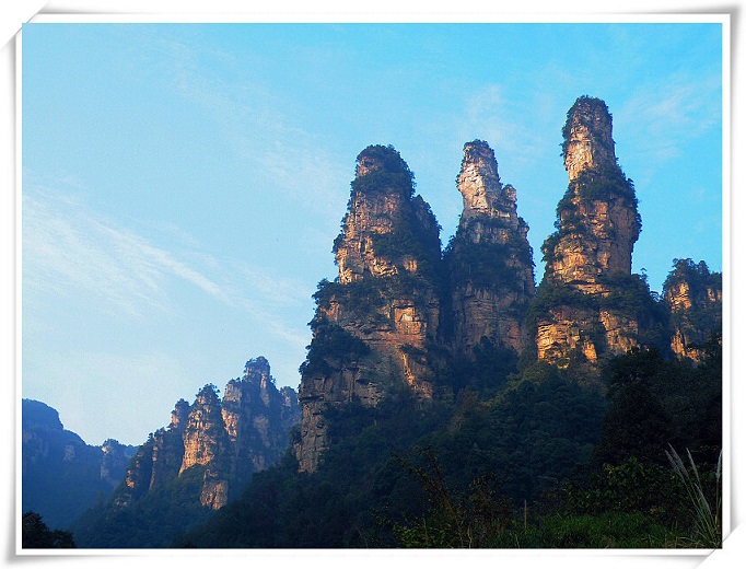 一:十里畫廊,在這條長(zhǎng)達(dá)十余里的山谷兩側(cè),有著豐富的自然景觀,人行其間如在畫中。山上的巖石形成了很多似人似物、似鳥似獸的石景造型,例如:采藥老人,三姐妹峰,全家福等等。